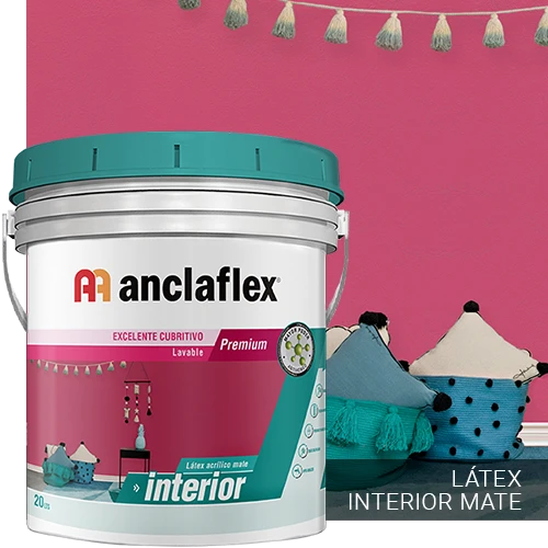 Anclaflex Látex Interior es un producto acrílico de base acuosa desarrollado para proteger y decorar paredes interiores. Su fórmula equilibrada facilita la aplicación disminuyendo el salpicado, confiere muy buena nivelación, buen poder cubritivo y es resistente al lavado. Sus componentes aditivos de alta efectividad le confieren una gran resistencia a los hongos y una mejor penetración y adherencia. Nuestras pinturas están desarrolladas con un concepto ecológico logrando así un producto con bajo contenido de V.O.C. (Compuestos Volátiles Orgánicos), dando como resultado un producto amigable con el medio ambiente y los usuarios. Ideal para uso interior en el hogar y adecuado para habitaciones infantiles. Por su rápido secado y bajo olor permite una rápida habitabilidad.