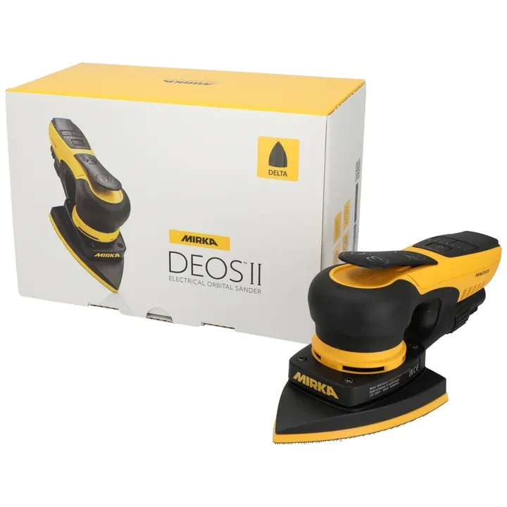 Mirka® DEOS II Delta 663 es una lijadora orbital eléctrica en forma de delta triangular. La forma triangular delta la hace ideal para un lijado preciso y eficiente de esquinas, perfiles, zonas verticales y de difícil acceso en cualquier ángulo. Diseñada para su uso en carpintería y pintura decorativa.